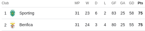 The title decider in Portugal was a draw, so it now goes down to the final day